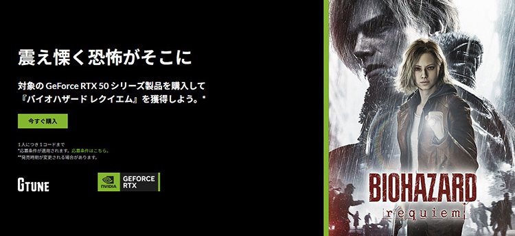 RTX50シリーズ購入で『バイオハザードレクイエム』がもらえるNVIDIAバンドルキャンペーン開催中
