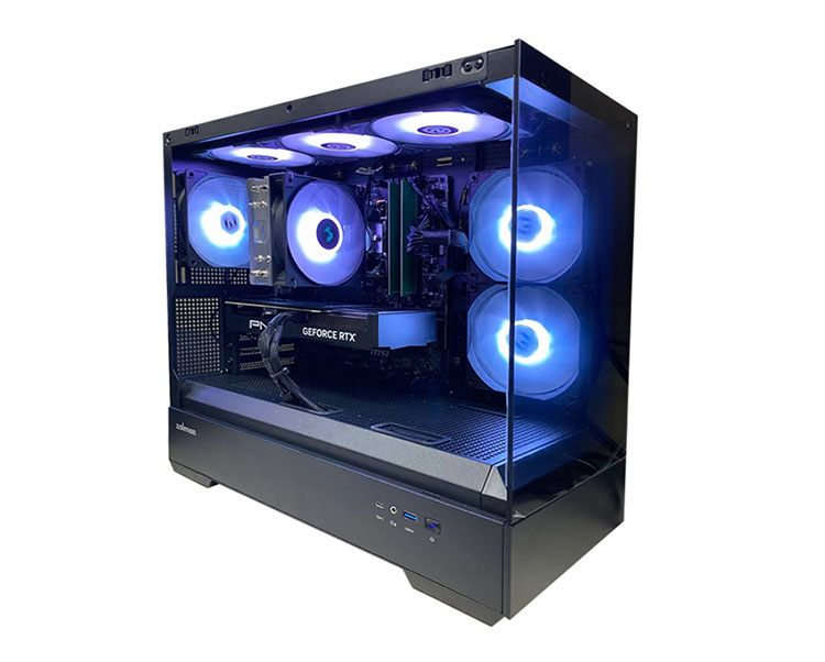 CPUには水冷式クーラー(240mmラジエーター)を搭載可能で、高負荷時も安定した冷却を実現。ストレージは高速な1TB NVMe Gen4 SSDを搭載し、ゲームロードやシステムの応答性が非常に優れています。