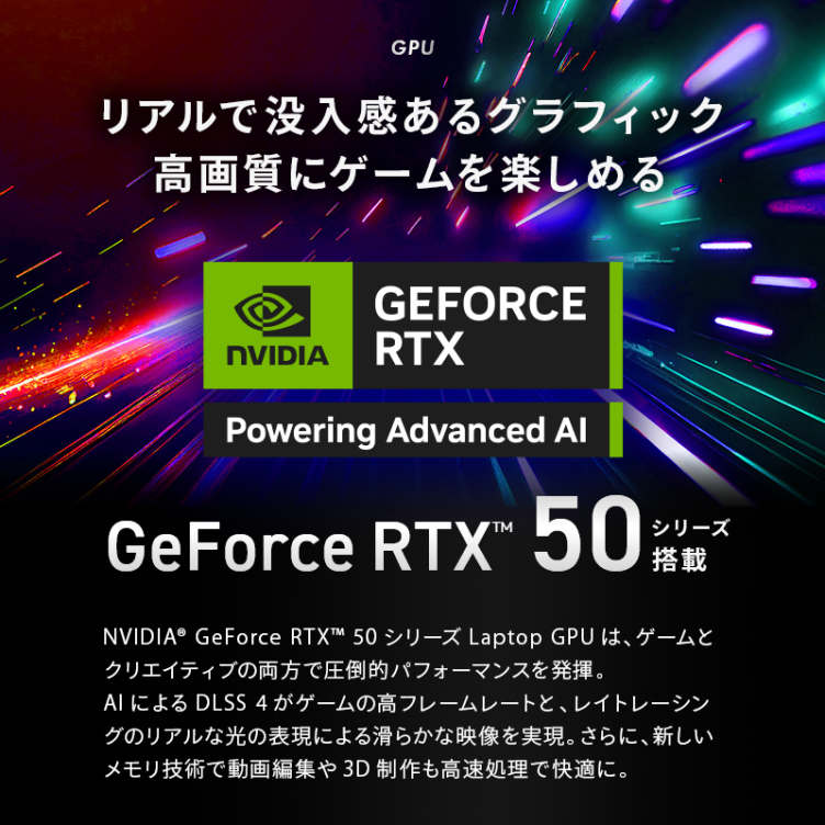 グラフィックスにはビデオメモリ8GBを搭載したRTX 5050を採用しており、重量級ゲームでも高画質でのプレイをしっかりサポートします。