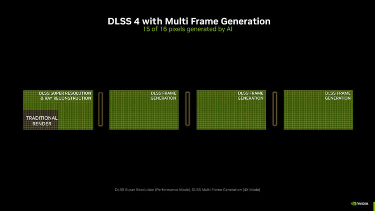 RTX 50シリーズでは「マルチフレーム生成」に対応しており、複数の中間フレームを挿入することが可能です。これにより、見た目上の滑らかさが劇的に向上し、画面上のフレームレートを倍増させることができます。