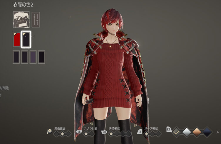 色を変更するオプションも用意されています。これにより、普段の装備とは違う世界観でキャラを楽しめます。注意点としては、布の物理演算がうまく動かない点です。