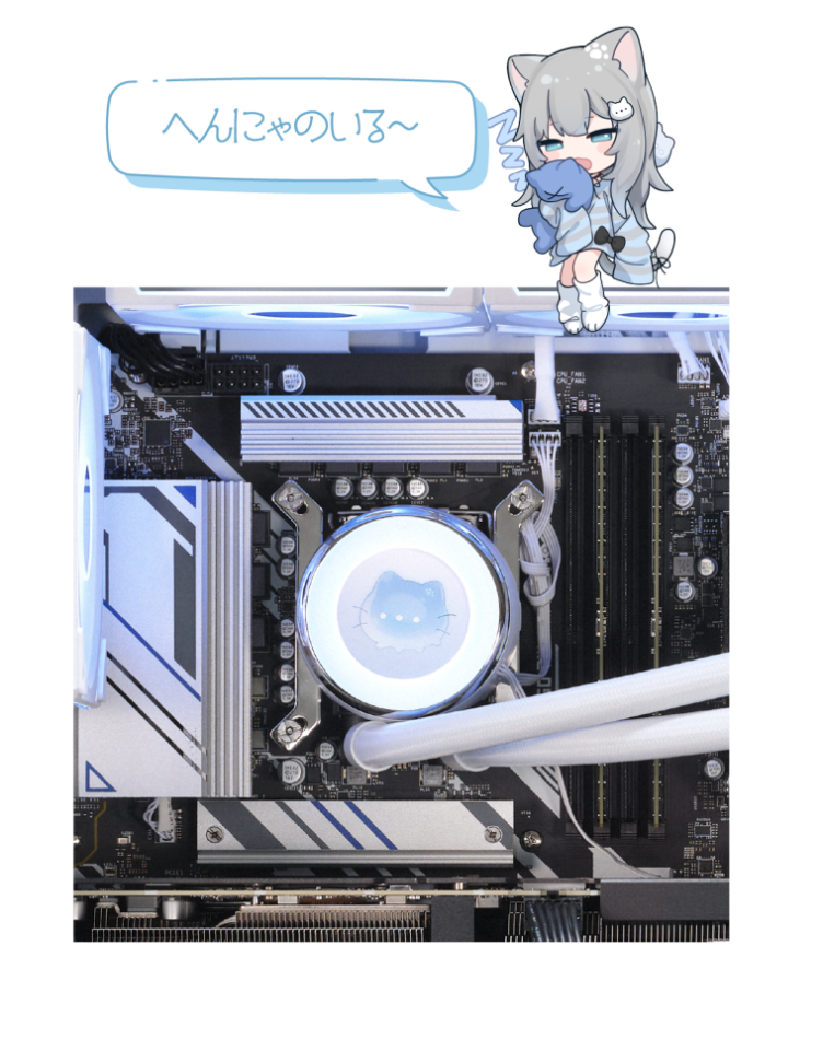 さらに、水冷CPUクーラーのヘッド部分にはコラボらしく、Crazy Raccoonメンバーから選べる仕様です。冷却性能も強化されており、高パフォーマンスを実現しています。