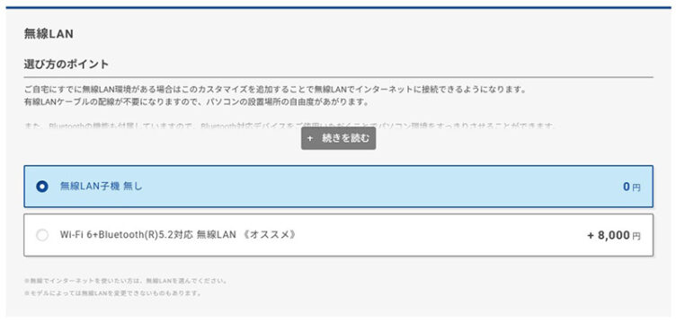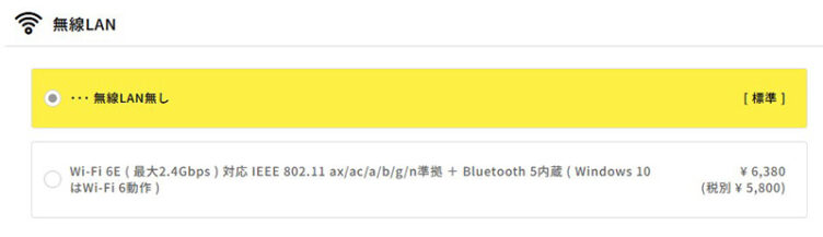 有線LANで接続できる環境なら無線LANは不要なので、カスタマイズでの選択制にしているBTOメーカーが多い傾向にあります。
