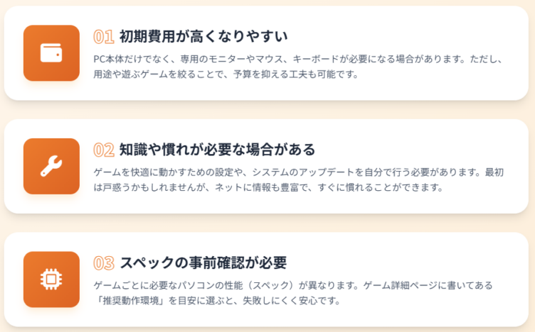 PCゲームを始める前に、デメリットについても知っておきましょう。