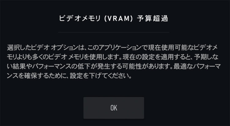 VRAM容量が求められるタイトルなので、最高画質を狙いたい方はVRAM 12GB以上のグラフィックスボードをおすすめします。