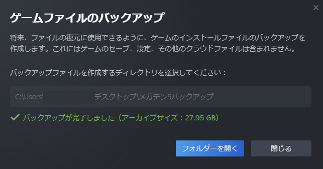 何回も環境を構築する場合、事故った時(ゲームが起動しない・不具合が出た時)にバックアップがあれば、即座に正常な状態へ復活できます。この作業を繰り返すほど、バックアップの恩恵は大きくなり、結果として大幅な時短につながります。