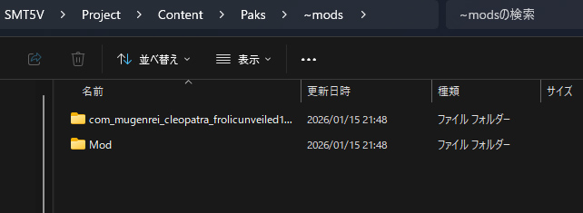 女神転生5 Vengeanceの主なMODの導入方法は以下の階層に入れる事です。