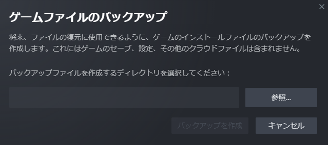 上記画面が出たら、参照ボタンを押して保存したい場所を指定して下さい。バックアップを作成可能です。
