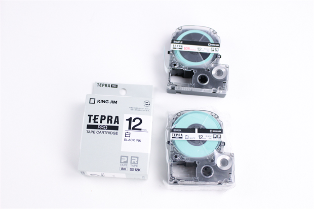 最大24mm幅のテープに対応しており、ファイル背表紙や備品管理など少し大きめのラベルも作成できます。
